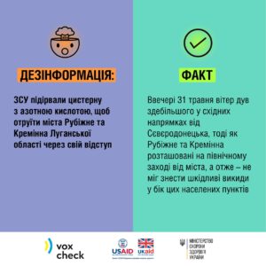Крім цього, російські ЗМІ писали, ніби українські військові намагалися отруїти жителів міста Кремінна та Рубіжне на Донбасі. У мережі продовжують поширювати фейки про мавпячу віспу. Нова хвиля повідомлень стосувалася того, що віспа — це побічний ефект від щеплення проти коронавірусу.