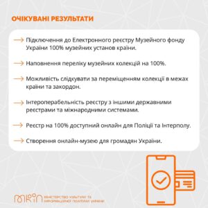 ?Підключення до Електронного реєстру Музейного фонду України 100% музейних установ країни;