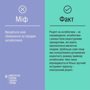 МОЗ розвінчує міфи про нові правила відпуску антибіотиків, які вже почали ширитися мережею.