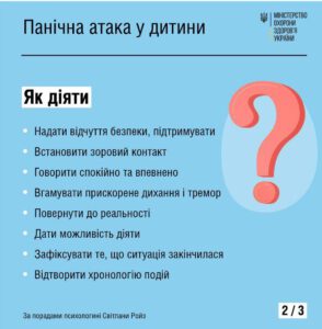 Якщо у дитини почався приступ паніки, спершу зарадьте фізичним симптомам, а далі пробувати повернути до реальності, перевести увагу дитини на щось конкретне.