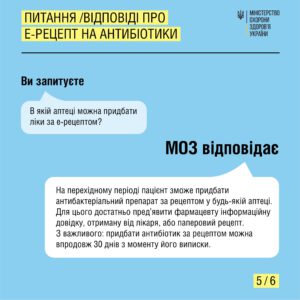 З 1 серпня в Україні запрацював електронний рецепт на відпуск антибактеріальних препаратів. Міністерство охорони здоров’я в інфографіці надає відповіді на найпоширеніші питання щодо нових правил: