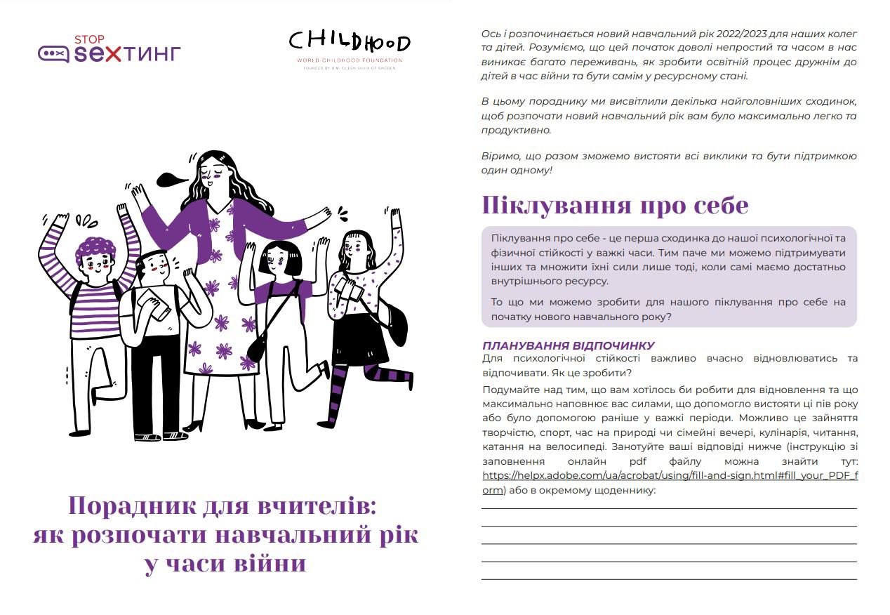 Команда освітнього проєкту Stop_sexтинг підготувала порадник для вчителів про те, як розпочати новий навчальний рік під час війни. Він містить інформацію про обов’язкові правила поведінки, які допоможуть зберегти життя дорослих та дітей у разі екстреної ситуації.