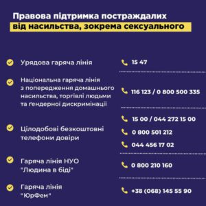 ?Контактна інформація, де кожен постраждалий українець та українка може отримати безоплатну, швидку та фахову правову підтримку, – на інфографіках?