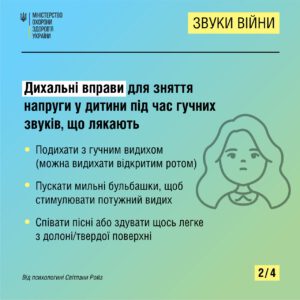 Детальніше про те, як допомогти дитині не боятися сирени й гучних вибухів, читайте на сайті МОЗ за посиланням: https://bit.ly/3TrKpbR