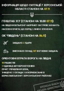 Інформація щодо ситуації у Херсонській області станом на 07.11