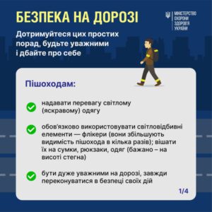 ? Кожен пішохід і велосипедист може вжити заходів, щоби бути більш помітним у темряві, кожен кермувальник – дотимуватися безпечної швидкості, зважати на знаки. Пам’ятайте: через нові виклики, спричинені повномасштабною війною, всі екстрені служби працюють із великим навантаженням. Допомогти їм, намагаючись уникати аварій на дорогах, – може кожен.