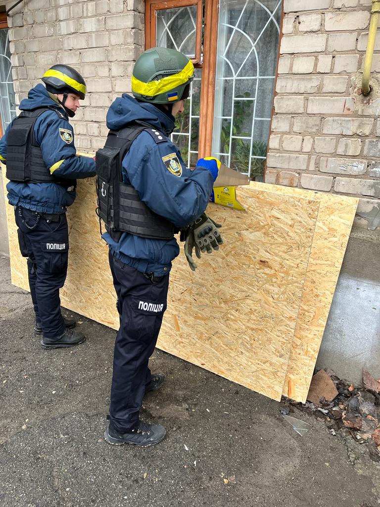Після масштабних обстрілів міста, які не вщухають донині, що забрали життя людей, покалічили десятки громадян, лишили по собі руйнівні наслідки для інфраструктури обласного центру, працівники поліції допомагають громадянам долати наслідки обстрілів квартир, будинків і убезпечувати помешкання.