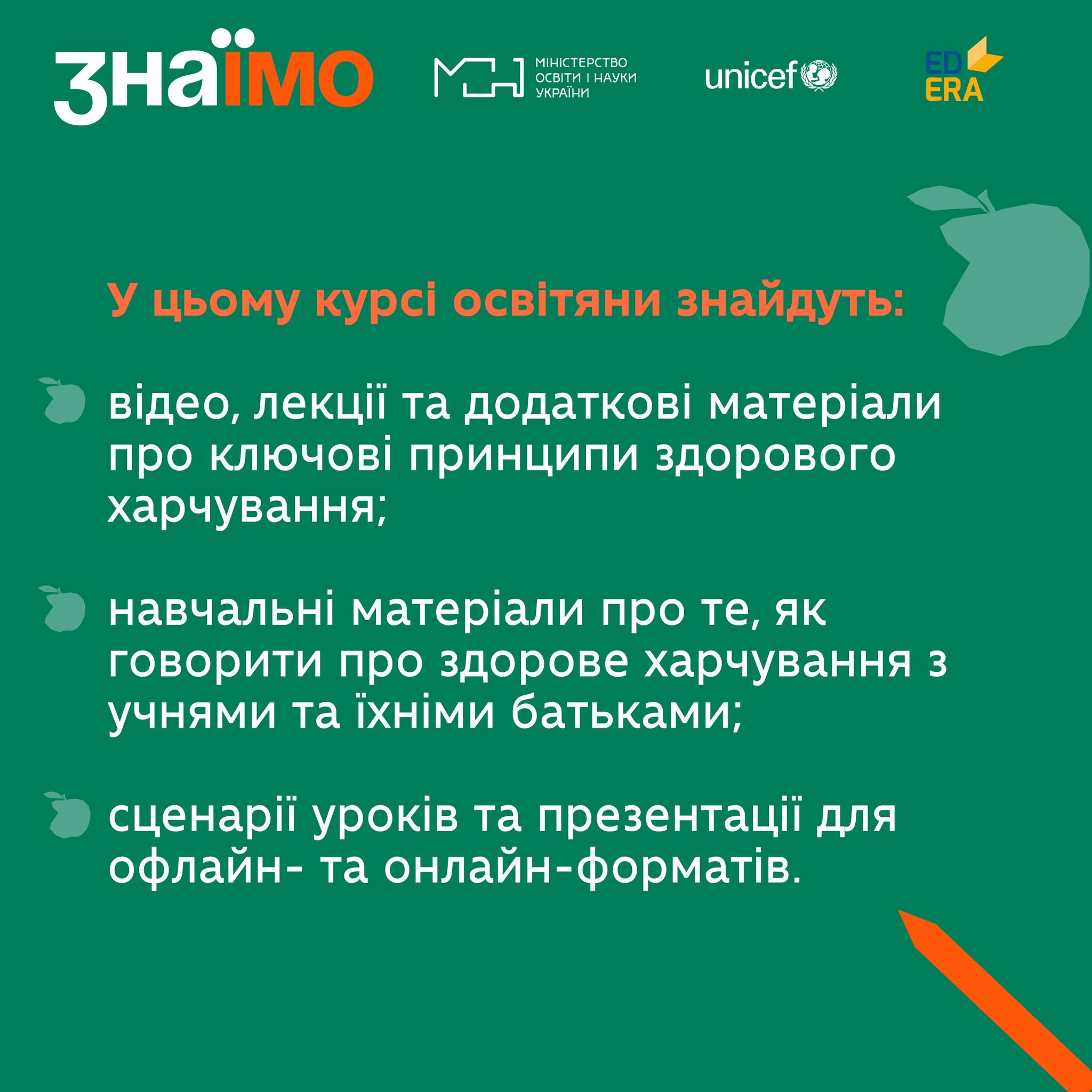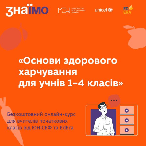Дитячий фонд ООН (UNICEF Ukraine) спільно з освітньою платформою «EdEra» створили онлайн-курс «Основи здорового харчування для учнів 1–4 класів»