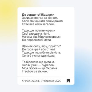 Проєкт «Поезія вільних», створений за підтримки Міністерства культури та інформаційної політики та Державне агентство України з питань мистецтв та мистецької освіти