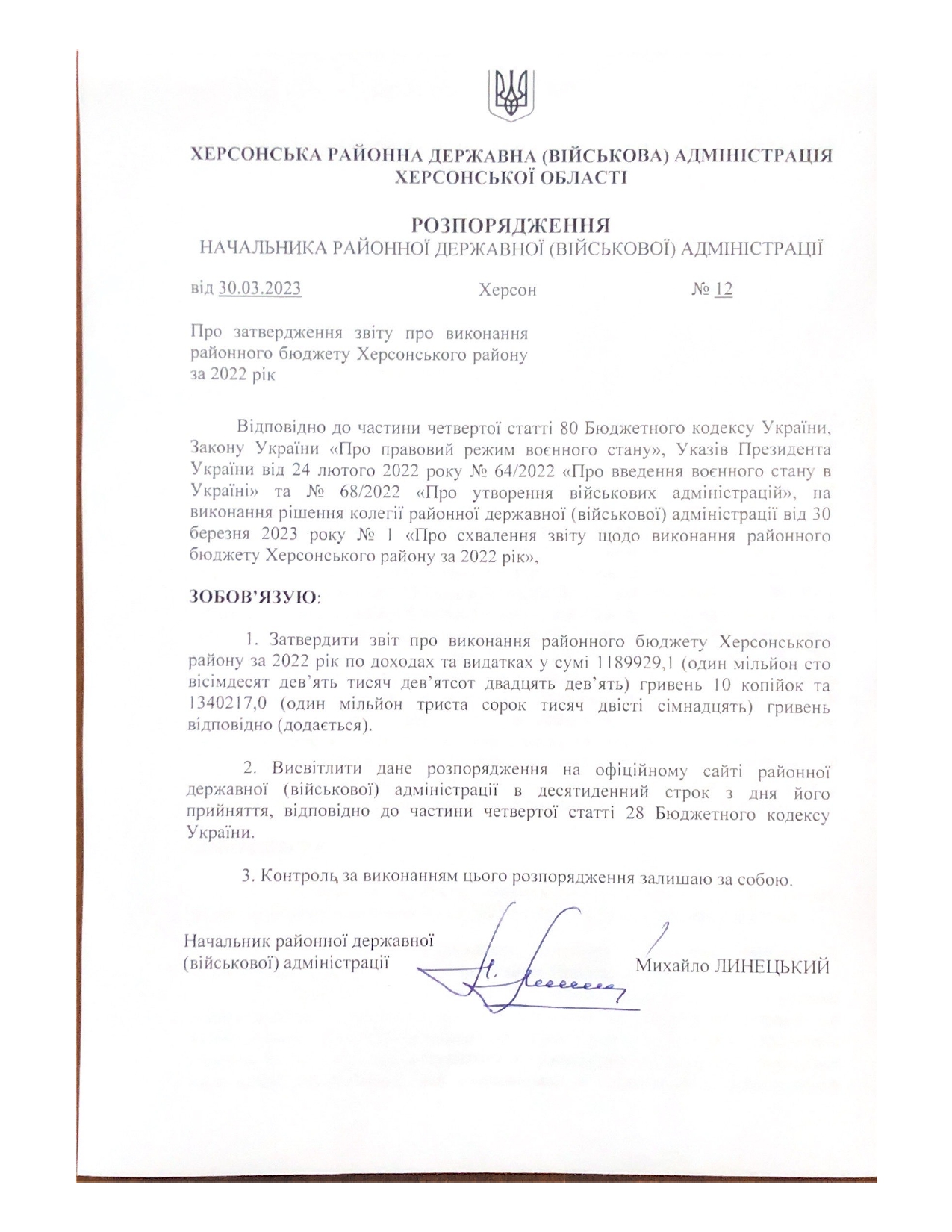 РОЗПОРЯДЖЕННЯ ХЕРСОНСЬКОЇ РДА