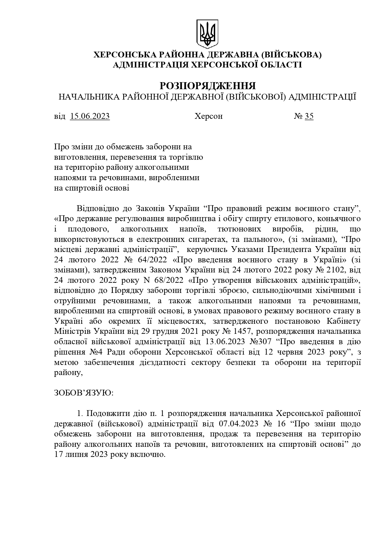 РОЗПОРЯДЖЕННЯ ХЕРСОНСЬКОЇ РДА