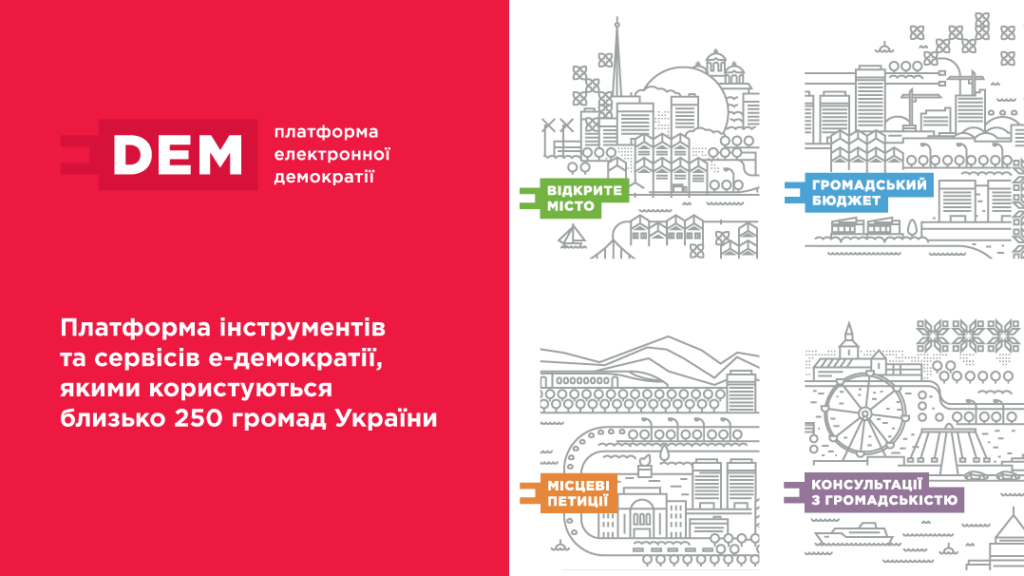 Веб-платформа «Єдина платформа місцевої електронної демократії» (скорочено – e-DEM) має на меті надати громадянам легкий і зручний доступ до використання кількох інструментів електронної демократії.Ці інструменти покликані налагодити кращий взаємозв’язок громадян та влади у вирішенні різноманітних соціально важливих проблем.