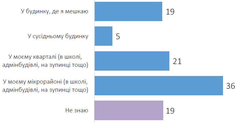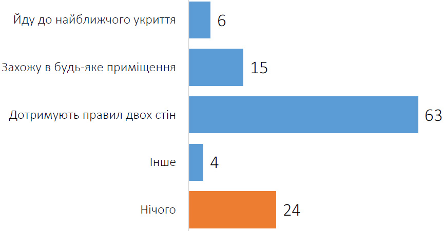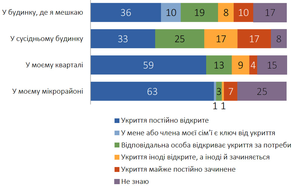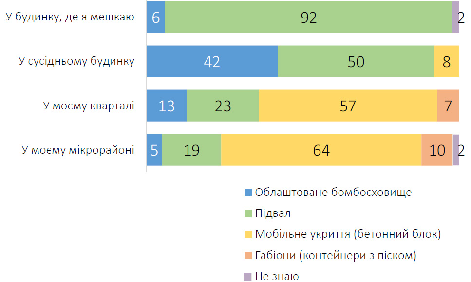 ДОСТУПНІСТЬ НАЙБЛИЖЧОГО УКРИТТЯ В ЗАЛЕЖНОСТІ ВІД ТОГО, ДЕ ВОНО ЗНАХОДИТЬСЯ (%)