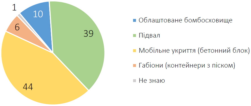 ТИП НАЙБЛИЖЧОГО УКРИТТЯ В ЗАЛЕЖНОСТІ ВІД ТОГО, ДЕ ВОНО ЗНАХОДИТЬСЯ (%)