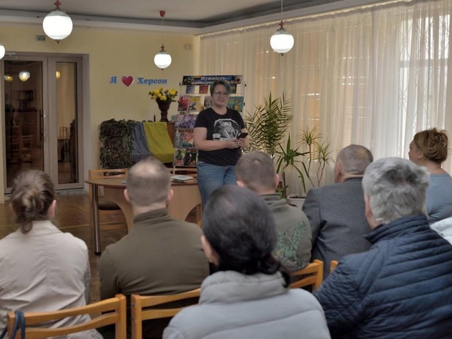 |  | У Херсоні до дня визволення відбулася зустріч з учасниками Всеукраїнського форуму військових письменників. Учасники обговорили роль форуму, його мету та труднощі, які доводиться долати митцям сьогодні. Про це повідомила Херсонська ОВА. У ній взяли участь співзасновниця форуму, директорка Львівської обласної бібліотеки для юнацтва ім. Р. Іваничука Тетяна Пилипець та письменниця, поетеса, громадська діячка з Львівщини Ольга Криштопа. Учасники обговорили роль форуму, його мету та труднощі, які доводиться долати митцям сьогодні. Херсонські автори зачитали свої твори, присвячені окупації та звільненню регіону. А співробітники обласної бібліотеки презентували фотосушку “Нескорений Херсон”. На ній зібрані світлини перших днів окупації та спротиву, який чинили містяни. |