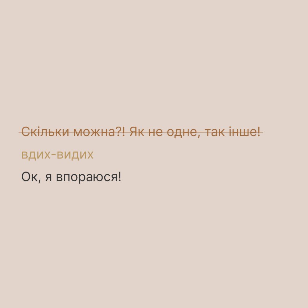 Гнів — це природна реакція, і цю енергію можна перетворювати на сили для подолання труднощів. Коли щось не вдається, коли відчуваєте, що закипаєте, не ігноруйте свої почуття. З’ясуйте, що саме вас дратує, подихайте, дайте собі час заспокоїтися і знайдіть у ситуації, яка склалася, мотивацію.