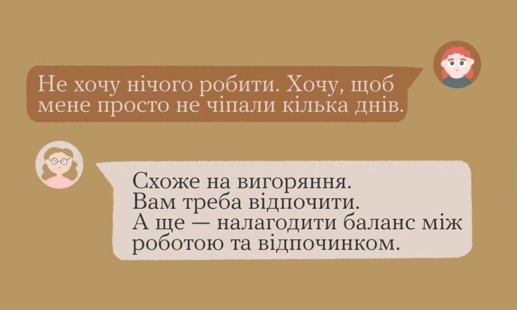 Таке фізичне чи емоційне виснаження також зветься «вигорянням». Аби не вигоріти, підтримуйте баланс між роботою та особистим життям. І почати варто з простого — припиніть перевіряти робочі чати у вихідні. А ще —