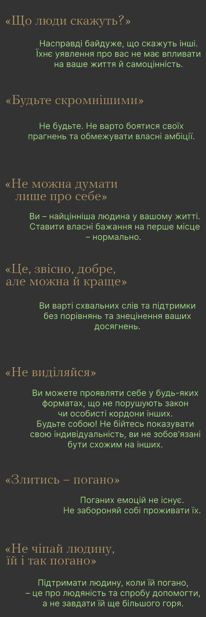 Більше про фрази, які ми чули від дорослих у дитинстві, і які виявилися хибними, читайте у дописі. Зібрали його разом із благодійним фондом «Сильні» (https://www.sylni.org/) ??