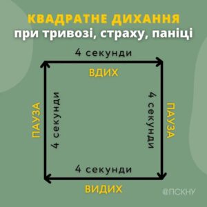«Дихання по квадрату» — одна з найпоширеніших технік, яка допоможе опанувати емоції, знизити відчуття тривожності, наситить організм киснем. Вона не потребує особливих умов, тож виконати її можна будь-де: вдома, в машині, в школі чи в укритті.