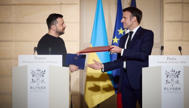 16 лютого 2024 року Президент України Володимир Зеленський і Президент Франції Емануель Макрон підписали безпекову угоду між Україною та Францією. Того ж дня Зеленський і федеральний канцлер Олаф Шольц підписали безпекову угоду між Україною та Німеччиною.