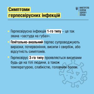 Існує герпесвірус людини (ГВЛ) 1 та 2 типу, віруси вітрянки, Епштейна-Барр, цитомегаловірус та віруси герпесу людини 6, 7 та 8.